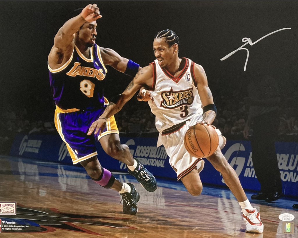 Photo measures 16" x 20" in size and has been hand-signed by Allen Iverson (Philadelphia 76ers, HOF).