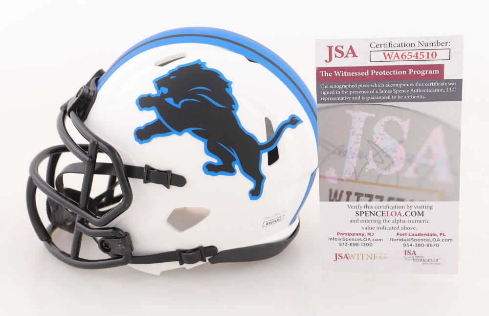 Riddell Detroit Lions flash alternate speed mini helmet. Hand-signed by Brock Wright.