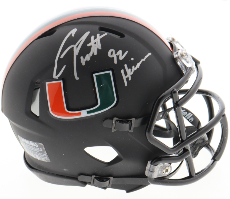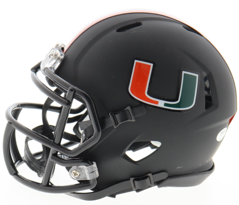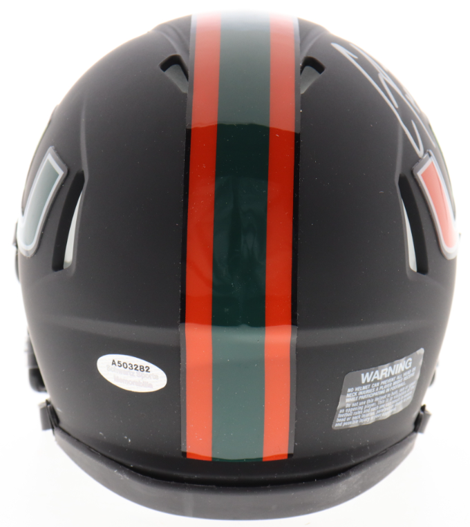 Schutt Miami Hurricanes mini helmet. Hand-signed and inscribed by Clinton Portis.