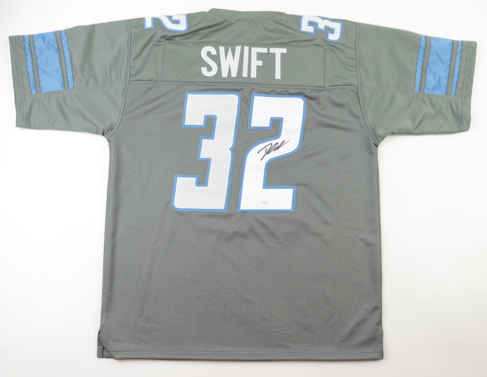Custom on-field style jersey. Hand-signed by D'Andre Swift. Size XL
