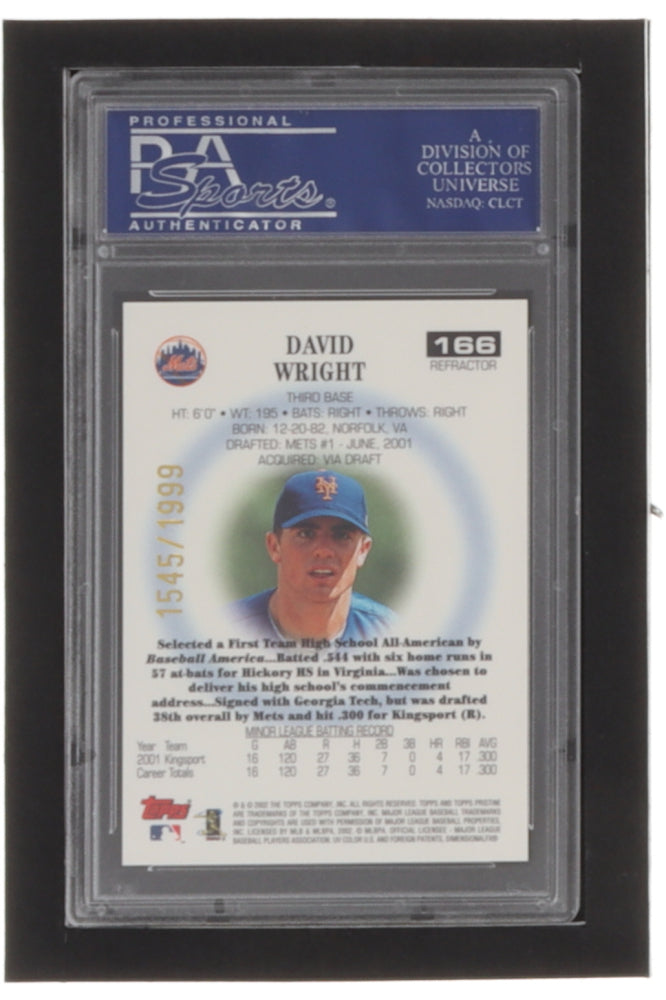 David Wright 2002 New York Mets Topps Pristine Refractor Card #1545/1999
