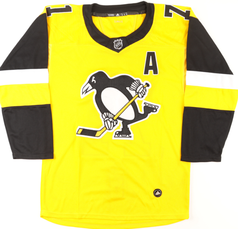 Adidas on-ice style jersey. Everything is sewn on, size 52. Has been hand-signed by Evgeni Malkin.