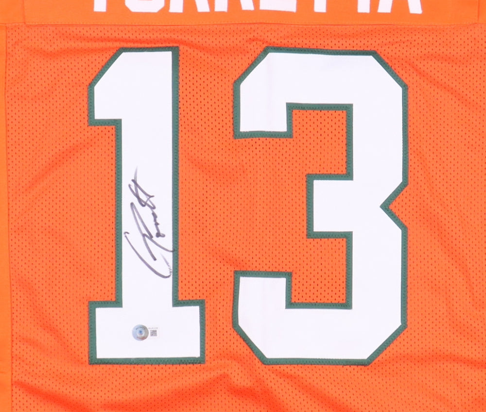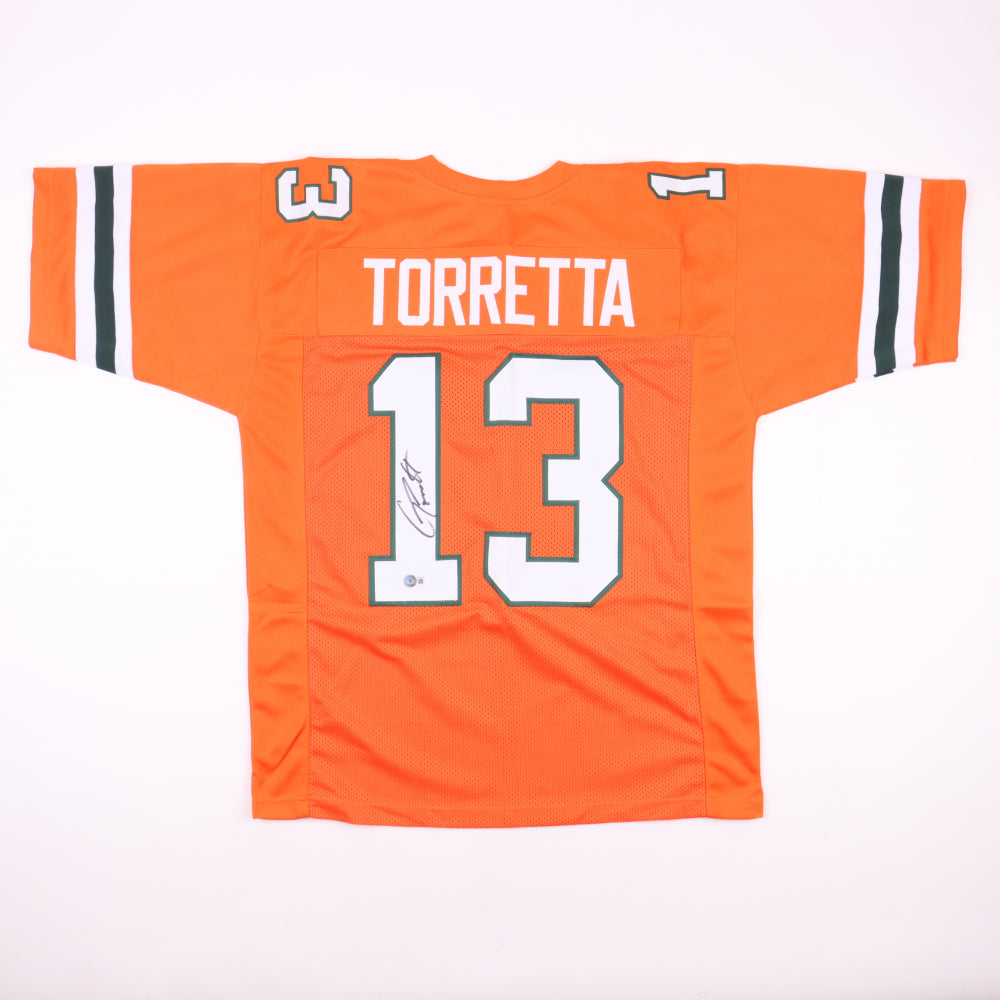 Custom on-field style jersey. Hand-signed by Gino Torretta. Size XL