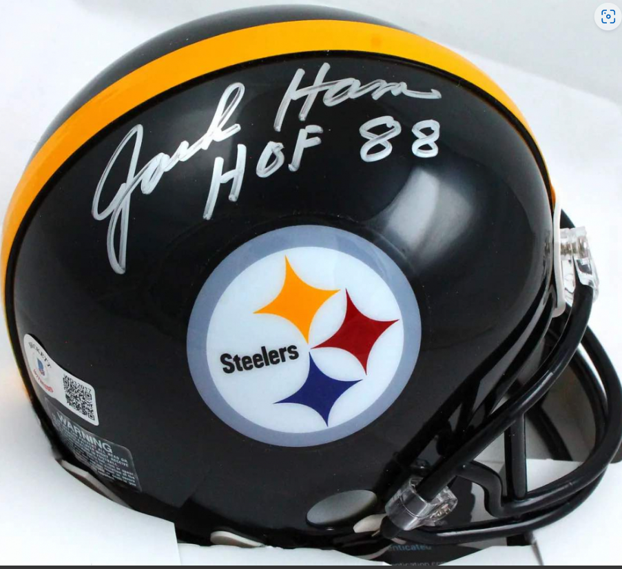 Riddell Pittsburgh Steelers mini helmet. Hand-signed and inscribed by Jack Ham (HOF).