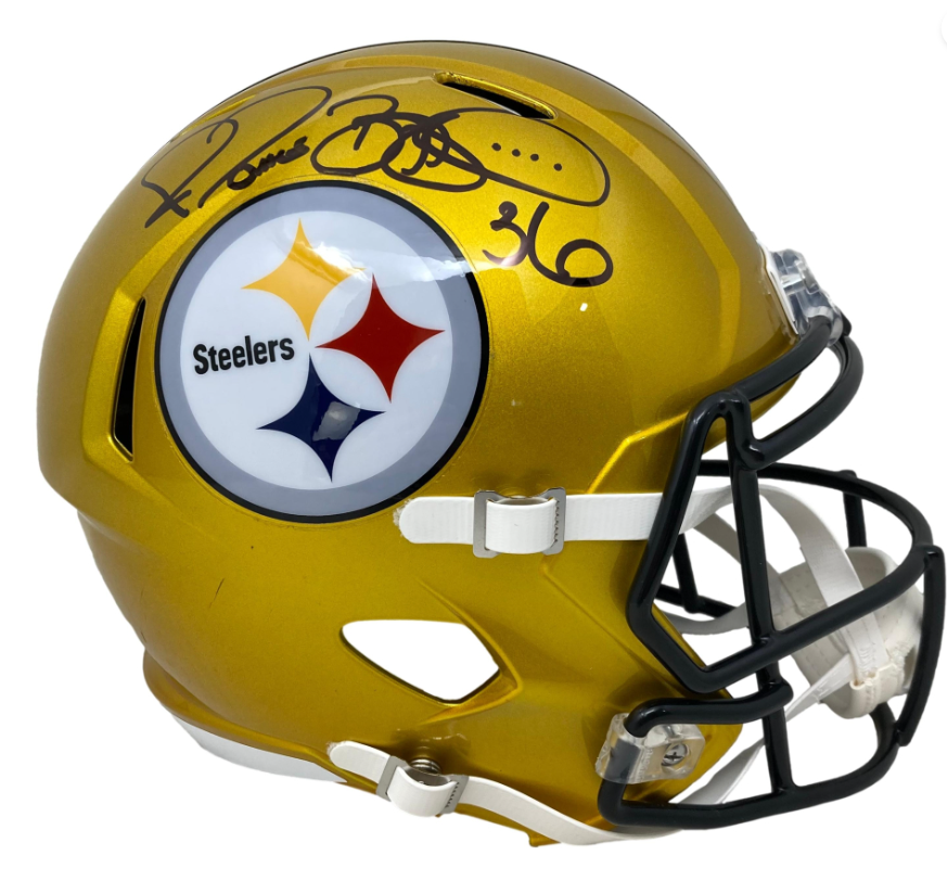 Riddell Pittsburgh Steelers full-size flash alternate speed helmet. Hand-signed by Jerome Bettis (HOF).