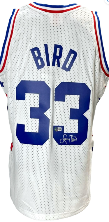 Mitchell & Ness Hardwood Classics jersey. Everything is pressed on, size XL. Hand-signed by Larry Bird (Boston Celtics, HOF).