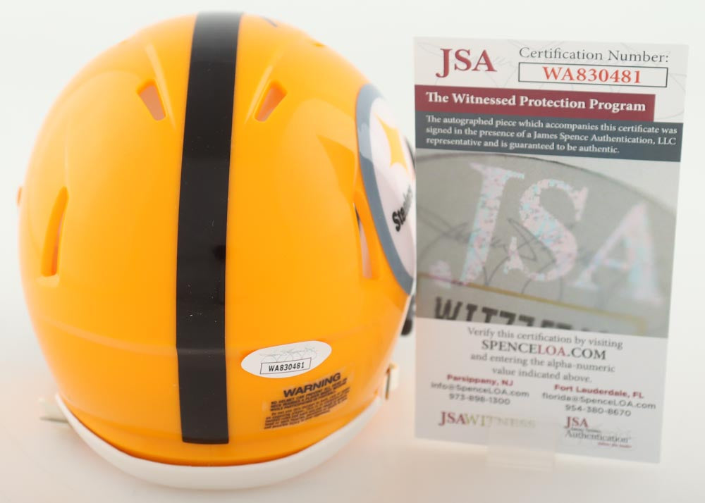 Riddell Pittsburgh Steelers Speed mini helmet. Hand-signed by Michael Vick.