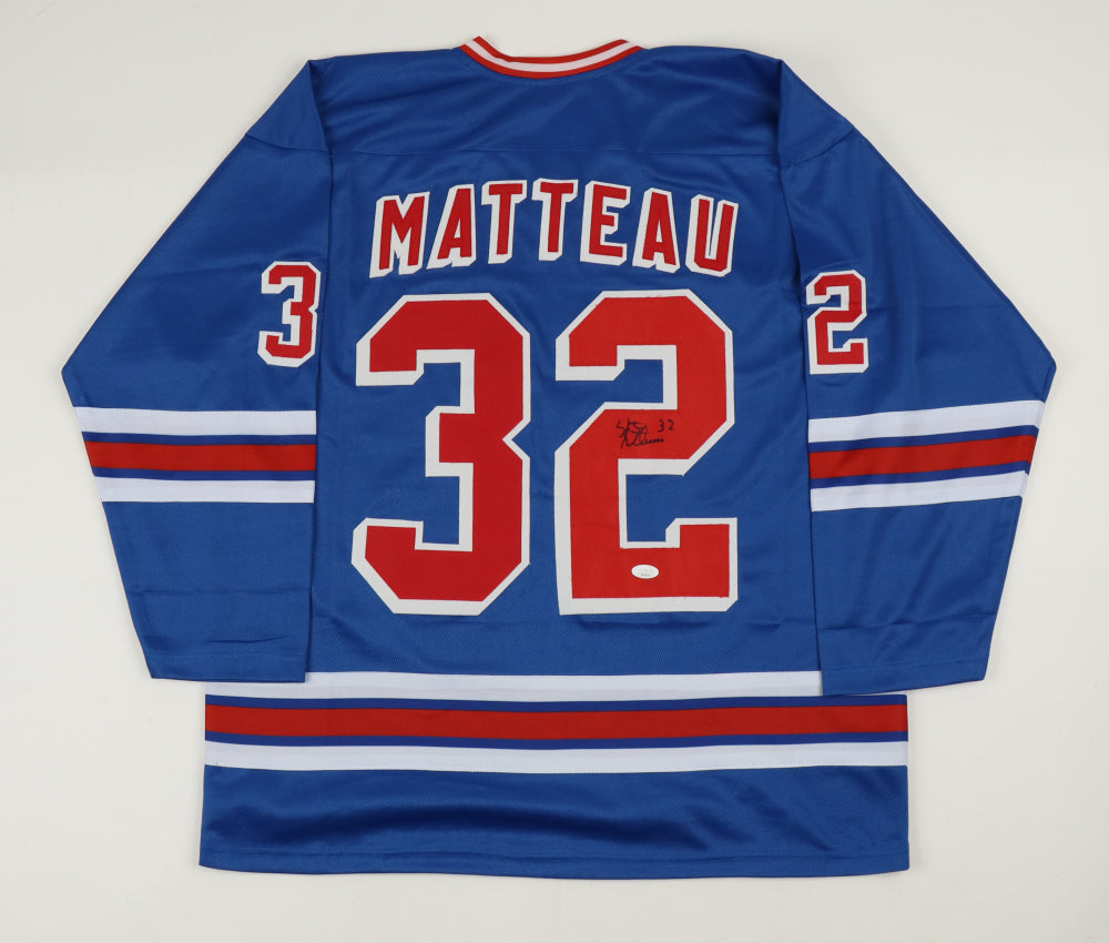 Custom on-ice style jersey. Hand-signed by Stephane Matteau. Size XL